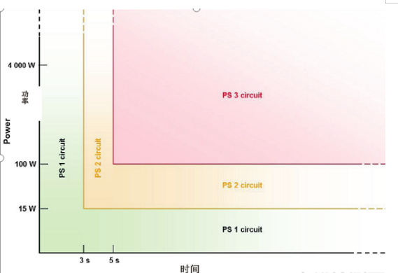 按照?qǐng)D35,最不利的功率源故障的功率測(cè)量:PS1:功率源在3秒后測(cè)量值不超過15W的電路PS2:功率源值超過PS1限值,和5秒后測(cè)量值不超過100W的電路PS3:功率源值超過PS2限值