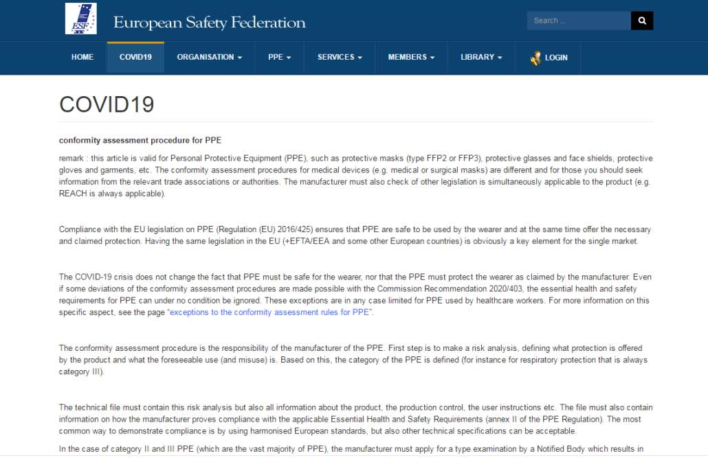 歐洲安全聯盟在其官方網站上發文明確:防護口罩等個人防護用品(PPE)需滿足REACH法規等要求。