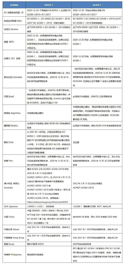 如下列出了不同國家60950-162368-1的接受情況,方便大家查閱。