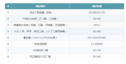 1. 電子煙釋放物(Emission)成分測(cè)試;