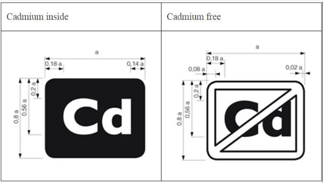 若其均質(zhì)材料中鎘(Cd)的濃度未超過歐盟RoHS指令2011/65/EU規(guī)定的限值(0.01%) ,則應(yīng)使用“Cadmium free”標(biāo)識(shí)。