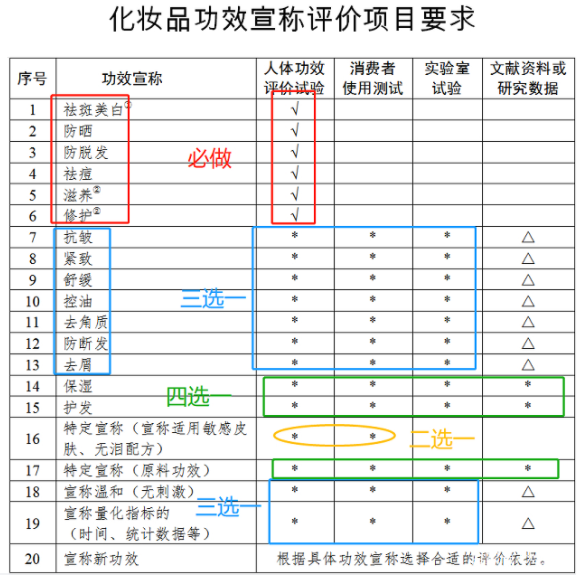 一、化妝品人體安全性和功效性測試項目:
